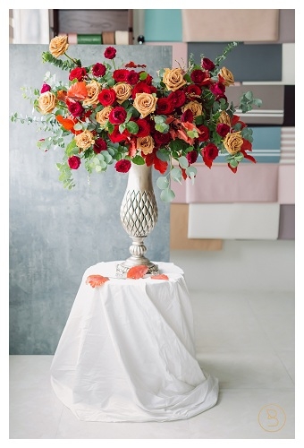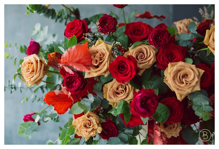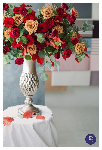 Bìnrh hoa gồm hoa hồng từ Ecudor kết hợp với các hoa lá phụ nhập khâu